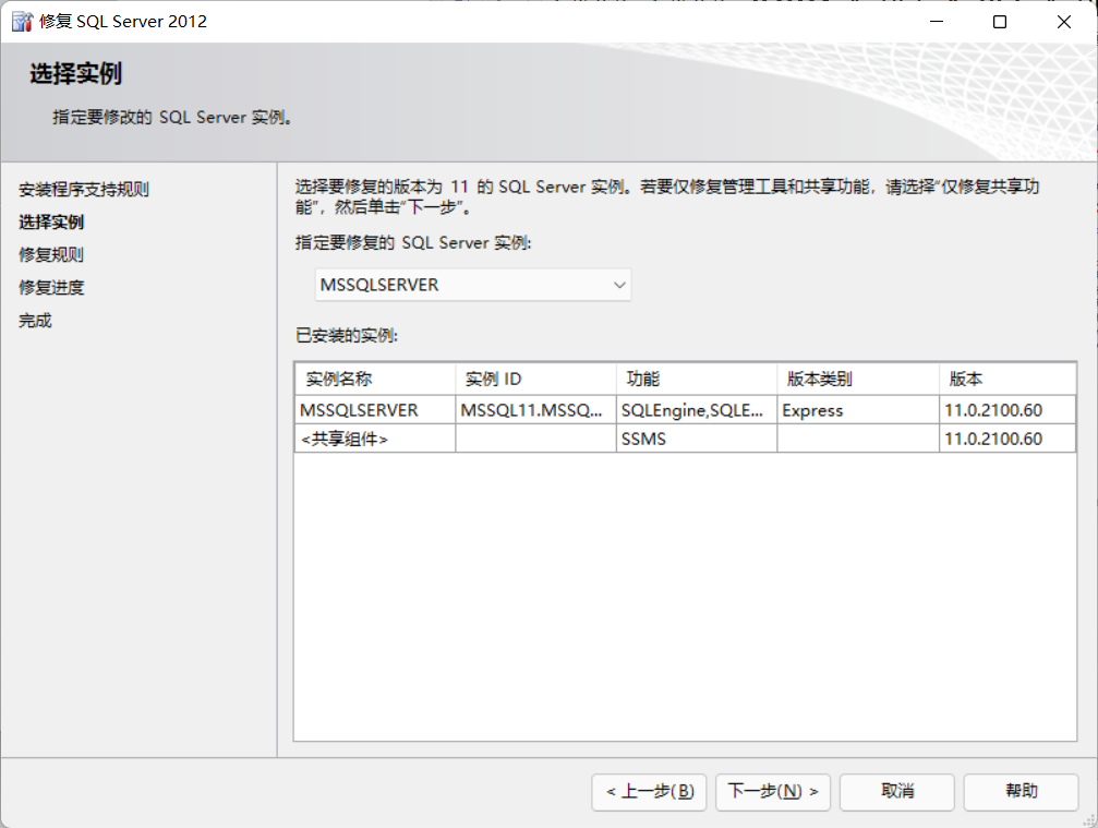 近期发现一些外网用户的单机版出现此类错误,导致数据库服务无法连接。查明是由于流氓软件破坏Windows系统DLL导致,即便卸载了流氓软件,由于对文件的破坏已经产生,所以故障依旧。下述解决方案通过SQL SERVER的官方修复方法进行服务修复,能够修复流氓软件对SQL SERVER的文件破坏,但如果有更多的破坏,无法确保此修复有效,遇到此类情况的用户可以先行尝试此方法进行修复。