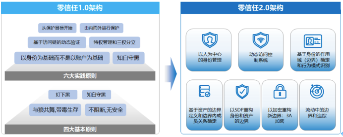 另一方面,在围绕资源建立了访问控制点后,改变传统基于位置和账户的认证和权限管理体系,结合人、可信终端、应用和账户四要素,进一步实现以身份为中心访问控制策略,进行持续信任评估和动态认证授权。