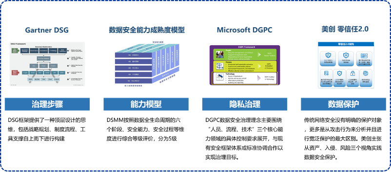 美创科技是国内较早推出专业数据安全治理服务,并率先于各行业落地实践的数据安全厂商。基于多年数据安全实践经验,美创数据安全治理服务创新汲取国内外领先数据安全治理框架与模型,以Gartner 数据安全治理理念(DSG)、Microsoft数据安全治理框架(DGPC)、零信任2.0等模型和框架方法论,以数据安全能力成熟度模型(DSMM)为抓手,正向驱动数据安全治理,从数据全生命周期视角,识别差距和风险,从管理和技术维度对组织的数据安全顶层规划进行设计,并通过输出配套的管理制度和流程规范,以应对组织数据安全建设和管理中的问题,如今已在政府、银行、能源、物流交通等各行业落地实践。