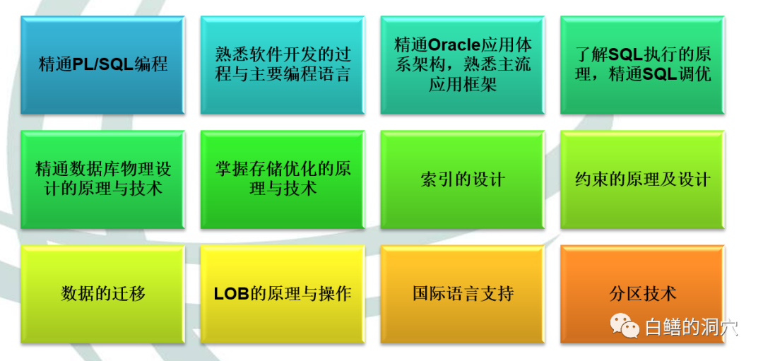 DBA需要掌握些什么?这是一个老生常谈了。老白进入这个行业的时候,数据库还是十分神秘的东西,能顺利的在两三天内把一个数据库安装起来的人就是高手高手高高手了。如果你再能弄几条SQL分析下BUFFER CACHE的命中率啥的,那就是神一样的存在了。随着信息化技术的发展,数据库也不那么神秘了,DBA也从神变成了类似码农的存在了,如果可以起个新名词,那么叫库奴也许比较贴切,和码农真真的好哥俩。十多年前,我们和客户交流数据库运维甚至是系统运维的时候,“以数据库为核心的系统运维”是一个十分时髦的概念,而且也往往能打动运维主管的心。