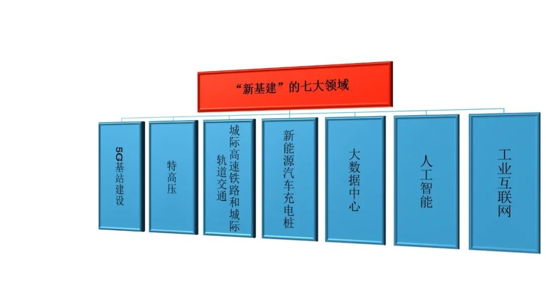 那么什么是新型基础设施?一般认为包括5G、特高压、城际高速铁路和城际轨道交通、新能源汽车充电桩、大数据中心、人工智能、工业互联网等领域。