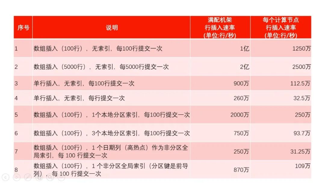 测试中使用的表有8列,由7列数值列和1列日期列组成。在一个数值列上进行了范围分区(32个分区),并且插入分区与实例关联。也就是说,每个RAC节点上的插入只进到一个分区子集,并且没有其他RAC节点插入到这些分区中。