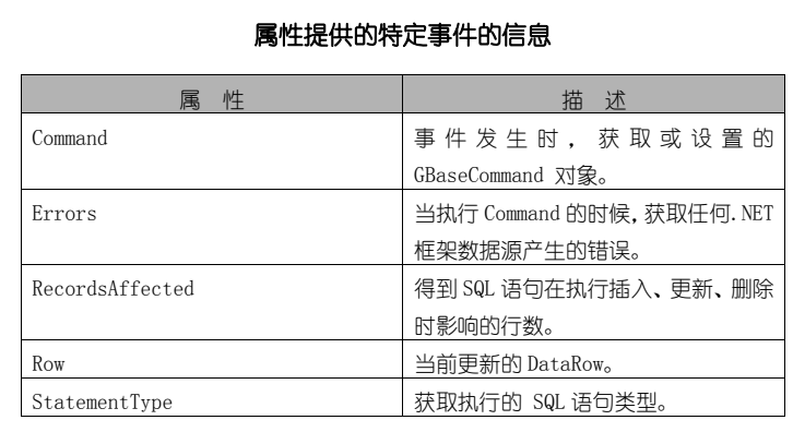 下面的 GBaseRowUpdatedEventArgs 属性提供了特定事件的信息。