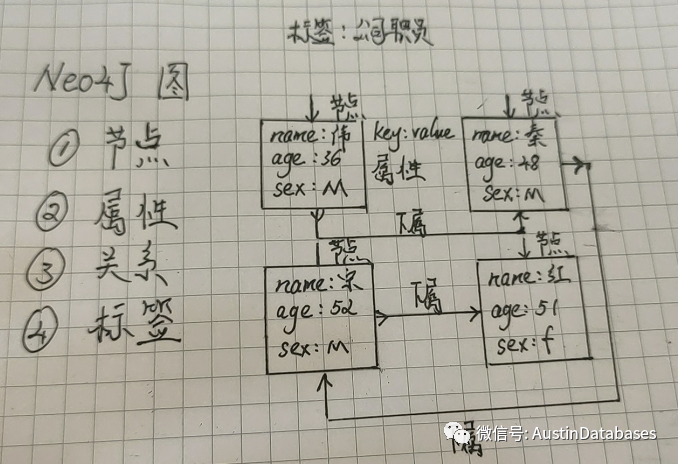 4 标签:标签就是这组节点的共性,例如都是某公司的职员,或者摇身一变都是一个城市的市民 ,标签是标记每个节点之间的相同点
