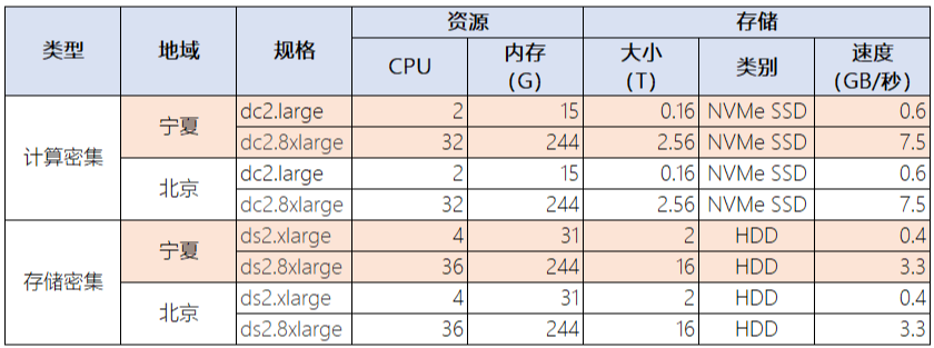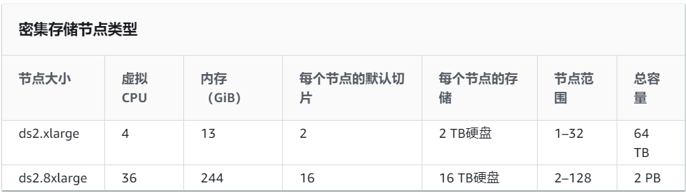 第一个阶段,就是无弹性节点。这一时期,云厂商更多是提供标准品。但为了满足来自客户侧的不同需求,往往通过定义多个规格来完成。从数据分析场景来看,比较显著的需求差异就是对核心两类资源:计算、存储的需求差异。一类是提供快速的计算访问,一类是提供海量的数据存储。因此在产品定义阶段,就分拆成不同的规格。例如Redshift的售卖规格(来自官网资料)