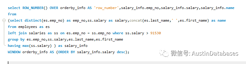 WINDOW orderby_info AS (ORDER BY sa.salary desc);