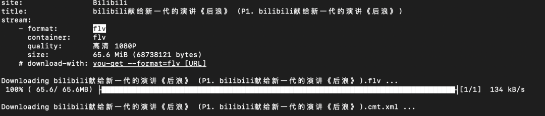 是的,这款下载工具包是基于Python开发的,实际它不只支持视频下载,还支持图片、音乐等。而且,只要视频的地址,一行代码就可,你别不信,我给大伙尝尝鲜。要不,就拿何冰老师《后浪》演讲视频试试?