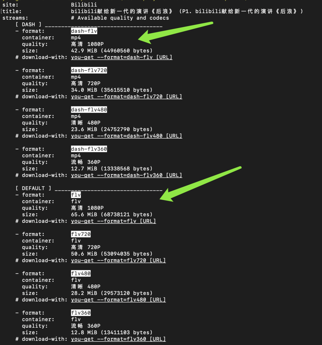 you-get -i '视频地址URL'