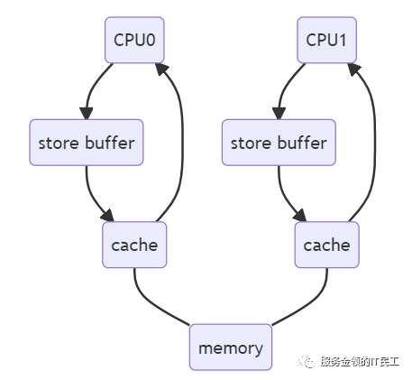 注意,这只能解决本CPU的问题,其他CPU是无法访问该CPU的store buffer中的数据的。也就是说,本CPU修改完了,但是暂存在store buffer中,其他CPU无法感知到该数据修改,可能造成数据读取错误。这就引入了写屏障,负责清空store buffer,保证所有store操作刷新到cache中。虽然CPU提供该指令,但是如何用、什么时候用就属于软件工程师需要关注的范畴了,我们先谈完硬件设计后面再谈软件相关的。