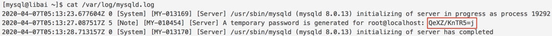 查看临时密码cat var/log/mysqld.log