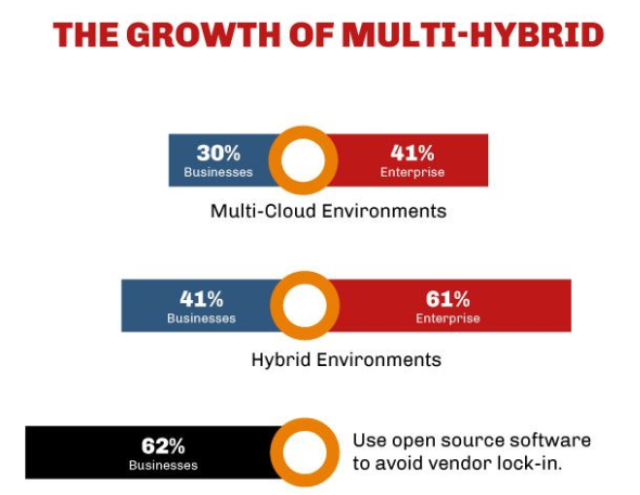 很多公司并未采用单一的云厂商,他们的大多数业务都运行在混合环境和多云环境中。调查数据显示,有61%的企业已经拥有混合环境。