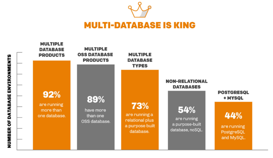 过去,DBA或基础架构团队通常会努力整合,并降低所使用技术的复杂性。这使许多公司过于依赖单一的商用数据库产品(比如 Oracle 或者 SQL Server全家桶)但现在这种情况已经成为历史,更多优秀专业的数据库产品被设计出来。开发人员和架构师越来越多的倾向于选择这些新技术,多数据库的趋势日益明显。