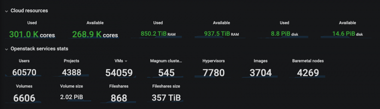 A: 目前,CERN云在80个cell中大约有300000个核心,OpenStack Magnum最近有很大的增长,用于管理Kubernetes集群、所有计算机中心硬件的OpenStack Ironic服务器以及Fileshares with CephFS。