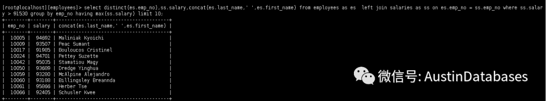 select distinct(es.emp_no),ss.salary,concat(es.last_name,' ',es.first_name)