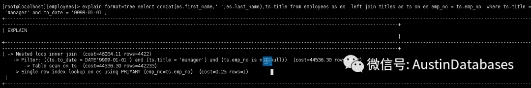 explain format=tree select concat(es.first_name,' ',es.last_name),ts.title from employees as es left join titles as ts on es.emp_no = ts.emp_no where ts.title = 'manager' and to_date = '9999-01-01';