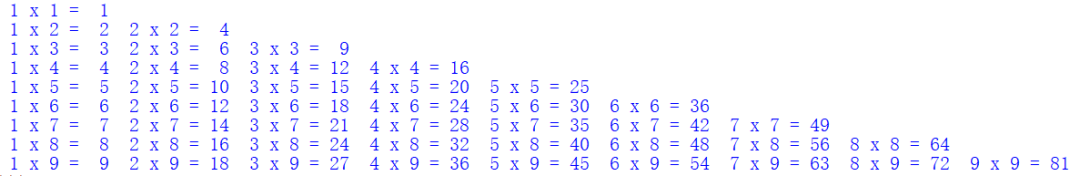 一行代码打印九九乘法口诀