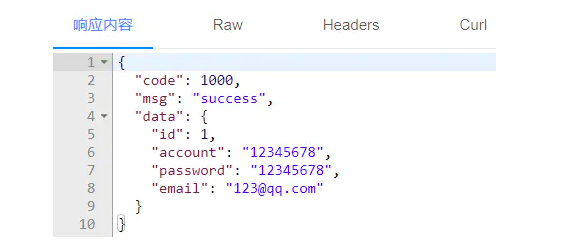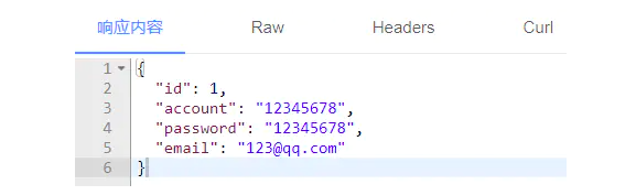 @GetMapping("/getUser")@NotResponseBodypublic User getUser() { User user = new User(); user.setId(1L); user.setAccount("12345678"); user.setPassword("12345678"); user.setEmail("123@qq.com");
