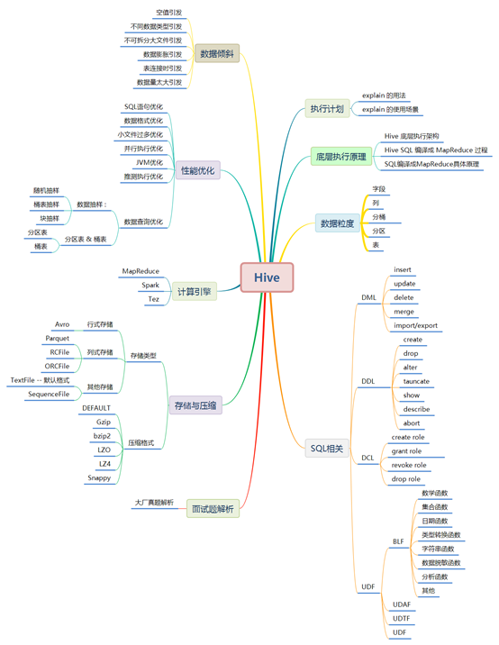 Hive涉及的知识点如下图所示,本文将逐一讲解:
