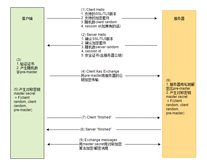 先来看下整个 SSL/TLS 的握手过程,之后我们再分步骤详细解读,每一步都干了些什么。
