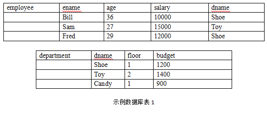 在整个博客文章中,我们将使用表1中员工和部门关系模式作示例,尽可能通俗的阐述问题。