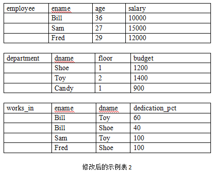 稍后,管理层可能会决定Bill可以在多个部门之间分配时间。在这种情况下,表1中的架构不再有效,并且数据必须更改为表2中的数据。请注意,我们必须添加一个名为work_in的表,其中带有dedication_pct字段以指示Bill在多个部门之间的时间划分。