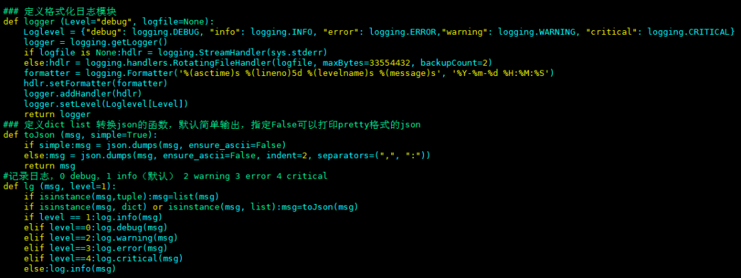 以上简单的PY脚本规范定义,保证标准输出永远是toJson(msg) 的 json信息。方便与接口对接。错误信息可以随时用lg() 保存到脚本中,方便排障。