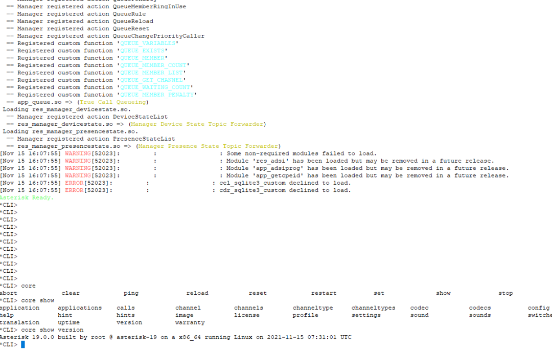 退出Asterisk后显示系统状态:
