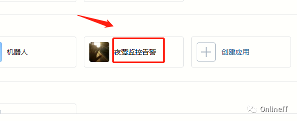 3、在应用管理模块,点击下方的创建应用,例如名称为夜莺监控告警,如图: