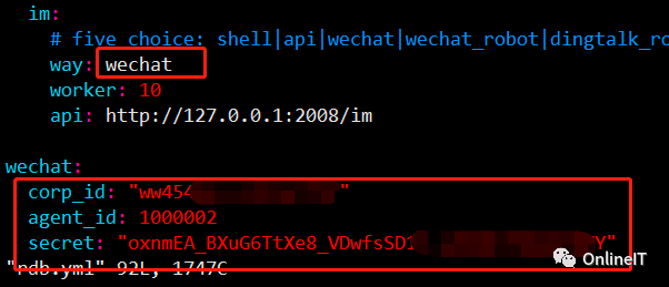注意:address.yml中只有rdb模块的IP地址为本机ip,其余都是服务端的IP地址,rdb.yml文件的微信告警配置方法和第一种方案配置方法一样,注意需要在用户界面创建告警微信用户并配置im的值