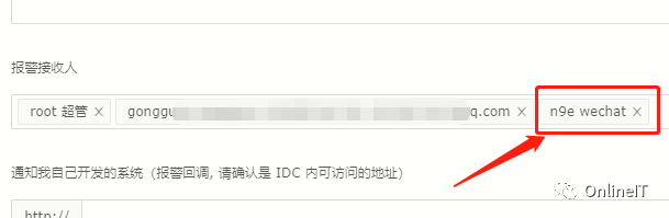 7、在告警策略中,添加告警接收人即可,如果有多个那么需要给每个用户配置IM字段,可将用户统一加入到组中,如图: