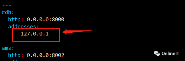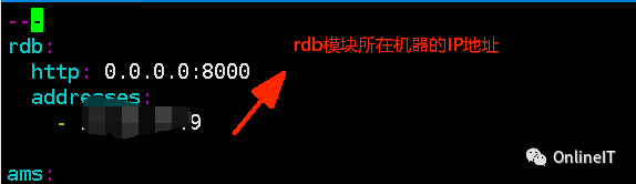 编辑address.yml文件,修改其中的rdb模块IP地址为本机IP,如图: