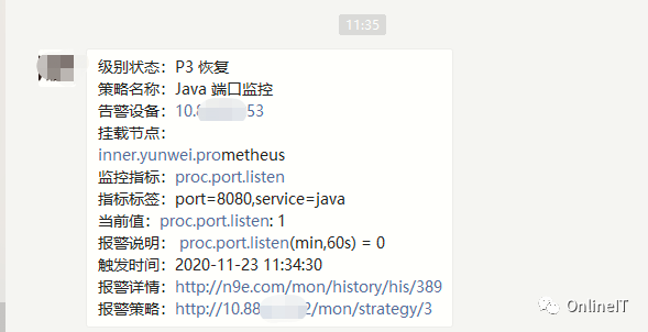 接下来通过监控告警系统中的采集配置以及告警策略进行告警测试,如图: