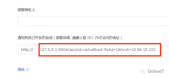 2、在对应资源的告警策略中,下面的自愈回调地址填写内容如下:
