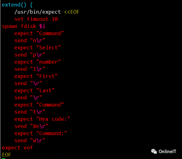 例子2:下面的函数实现的功能是对磁盘进行分区,在shell脚本中调用函数即可,如图: