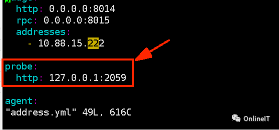 3、编辑address.yml文件,添加probe的配置信息,如图:
