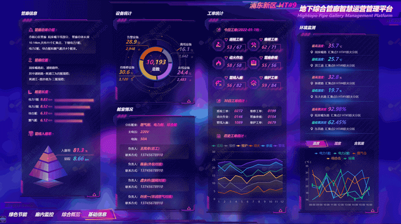 HT 可视化利用丰富的图表、图形和设计元素将相对复杂、抽象的数据通过可视的方式以更直观理解的形式展现,便于管廊运维人员的高效管理,无需通过人工核算等复杂形式进行地下综合管廊的运维分析。