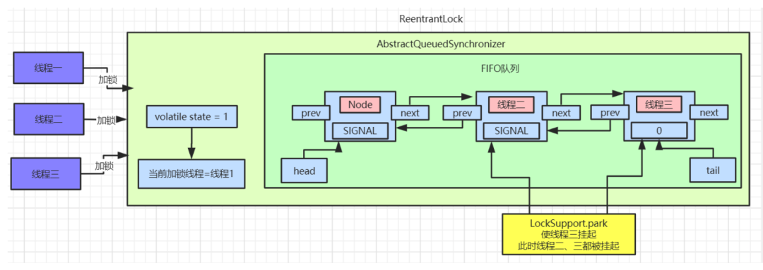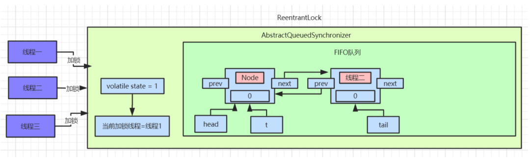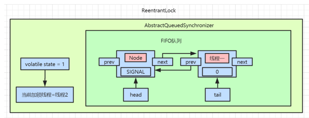 state=1则代表当前对象锁已经被占有,其他线程来加锁时则会失败,加锁失败的线程会被放入一个