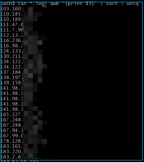 bash$ cat *.log| awk '{print $3}' | sort | uniq