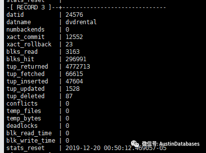 2 pg_stat_database 这个系统表,这样表可以很清楚的给出如下信息