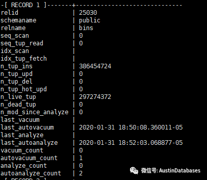 通过pg_stat_all_tables 可以将当前数据库中的表进行一个梳理,例如某个表的数据的 insert ,update del ,以及查询中使用的到的,以及查询的比率,还有了解到一个表最后一次 autovacuum的时间,等等有用的信息,尤其可以通过n_dead_tup 这个参数的跟踪,得到某个表是否有事务没有commit 制造了大量的 dead_tup 或者长事务,造成某个时间段的 dead_tup急剧上升等等,问题。