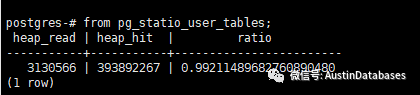 其实研究一下 pg_statio_uer_tables 这张表,可以很容易发现通过pg_statio_user_tables 这张表可以变化出多种系统的指标参数。