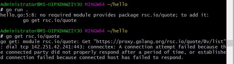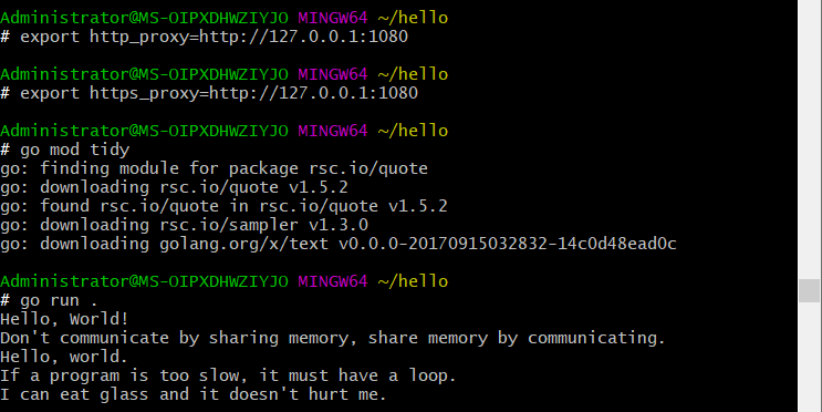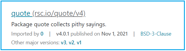 package mainimport "fmt"import "rsc.io/quote"func main() {fmt.Println(quote.Go())}