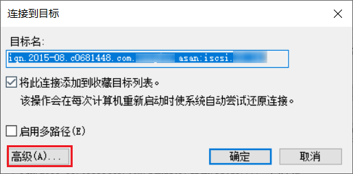 在连接对话框中,点击"高级"按钮