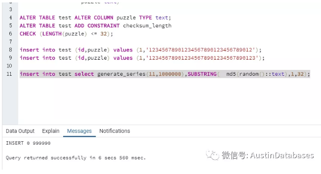 当然也有人说,你加完约束,系统的性能会受到影响,来来来我们做一个测试,插入1百万的数据,仅仅需要6秒多.