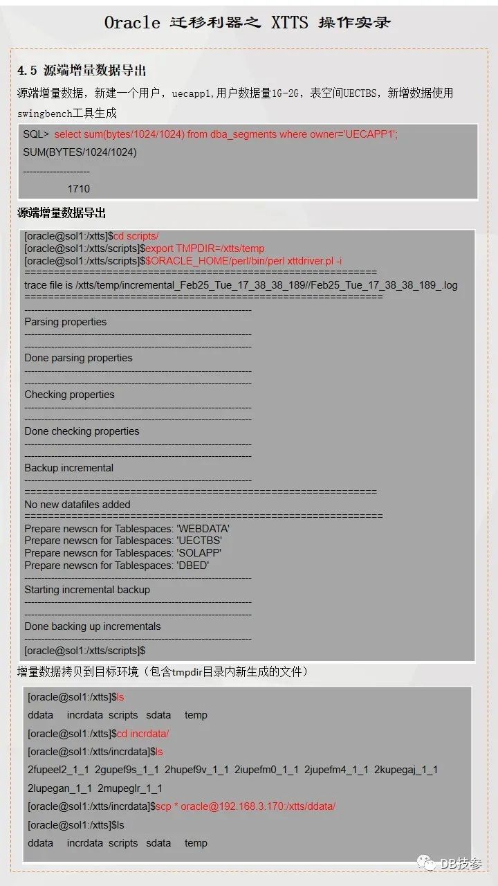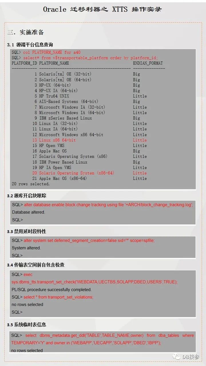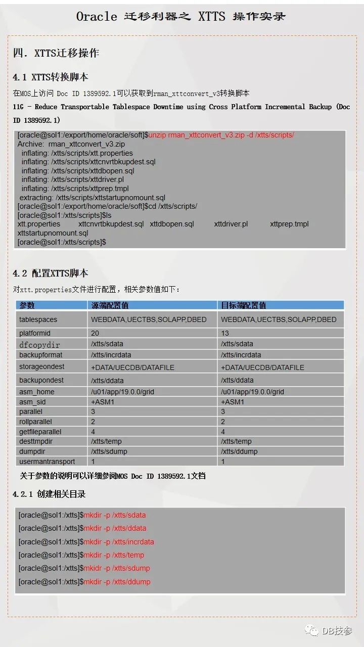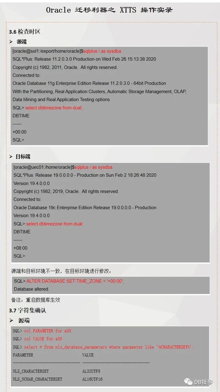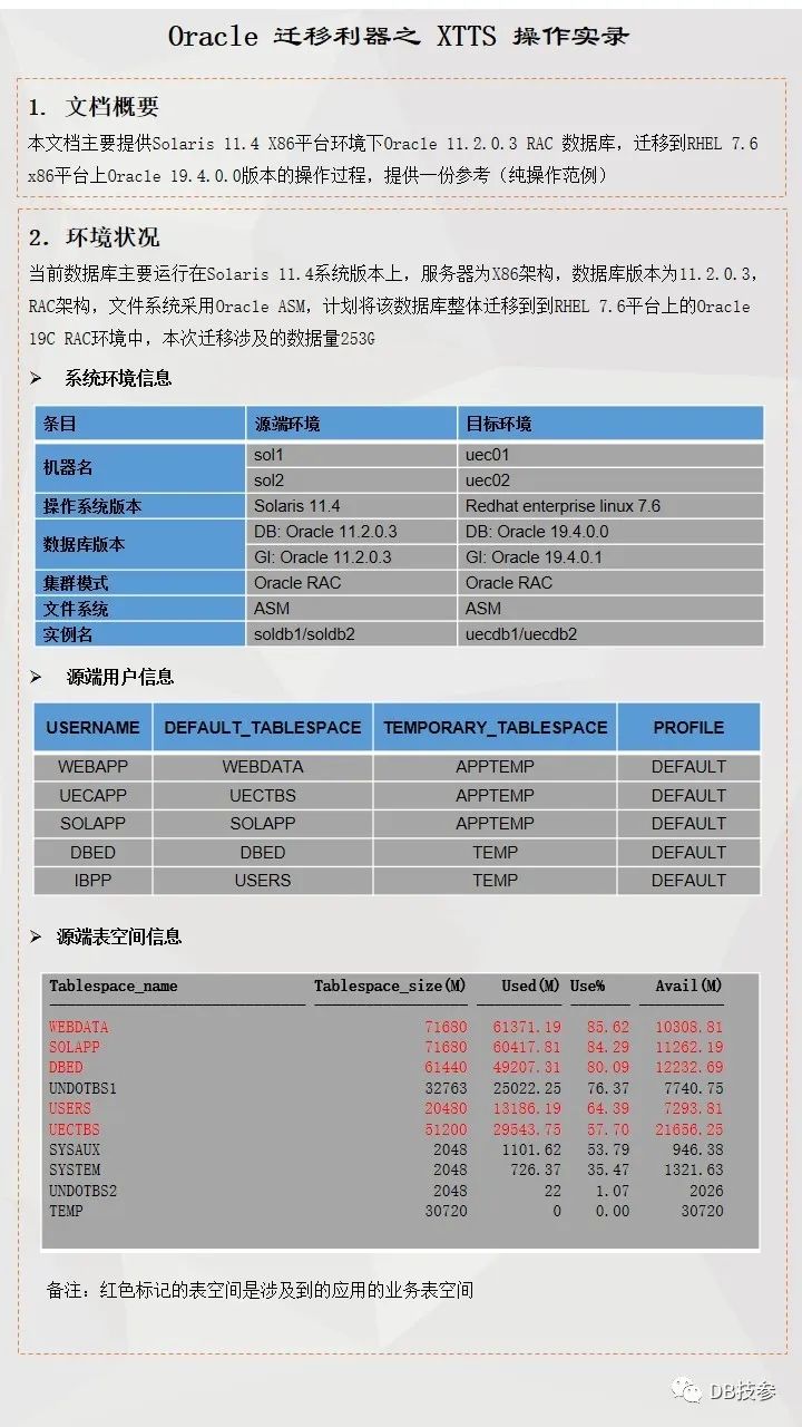 本文档主要提供一份跨版本跨平台使用XTTS进行数据迁移参考案例
