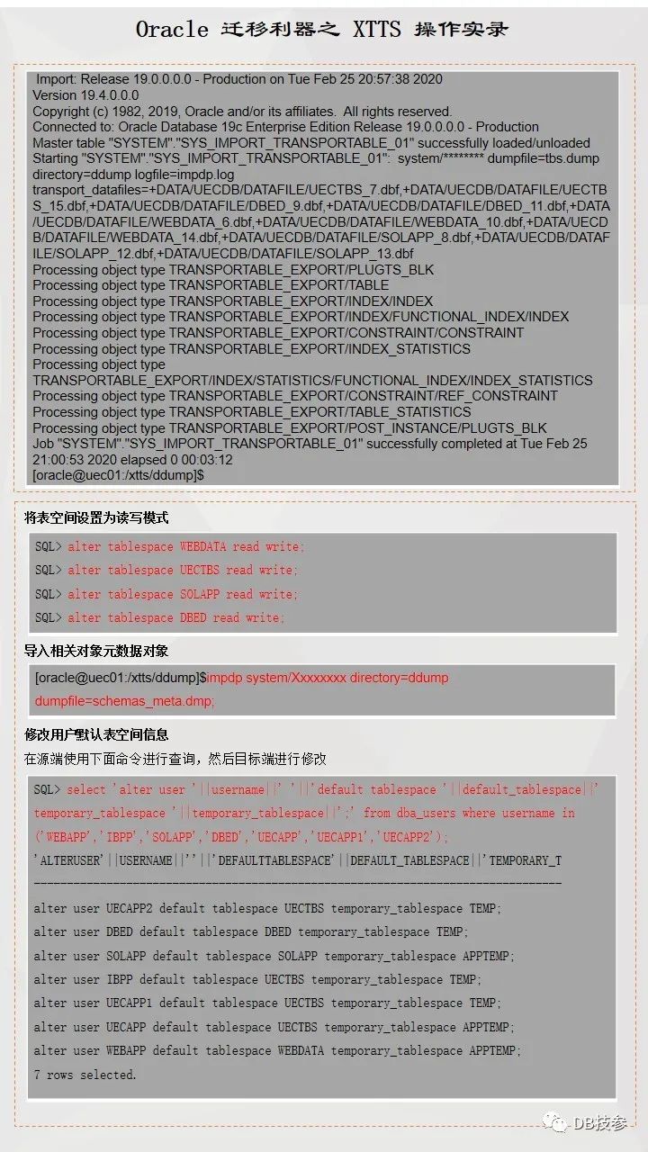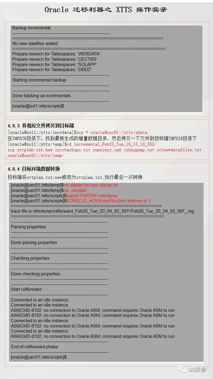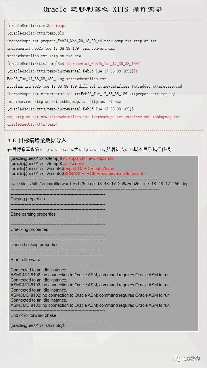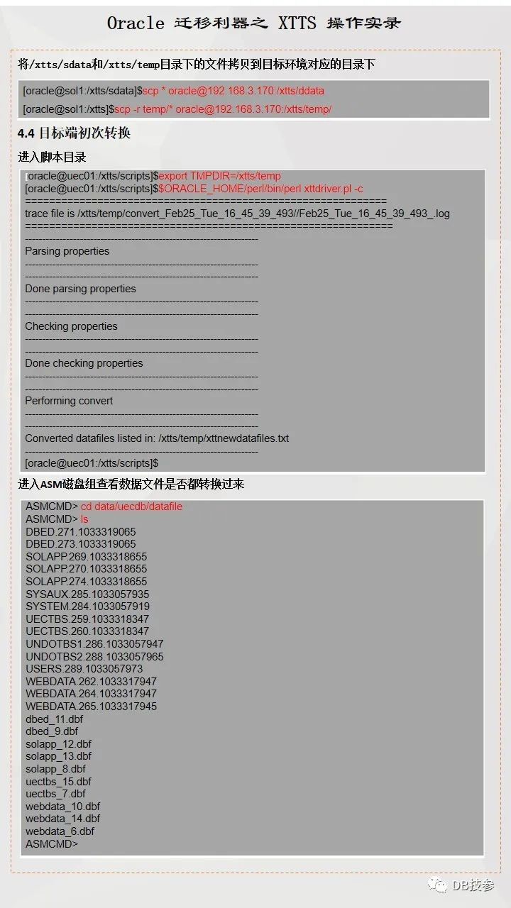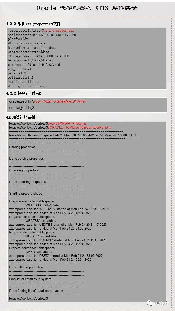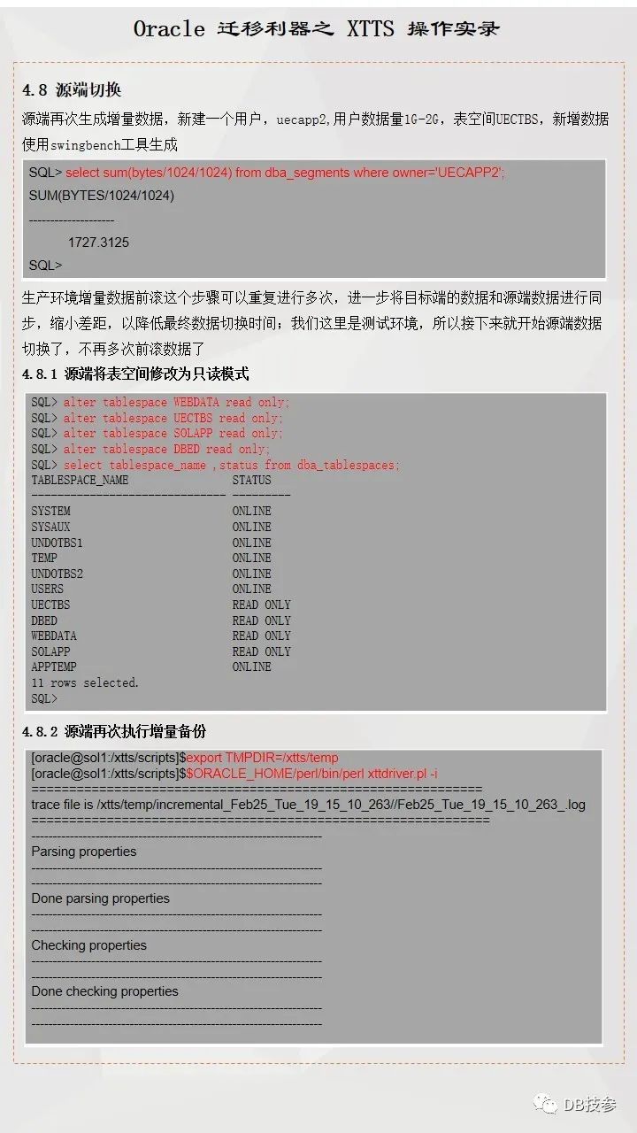 本文档主要提供一份跨版本跨平台使用XTTS进行数据迁移参考案例