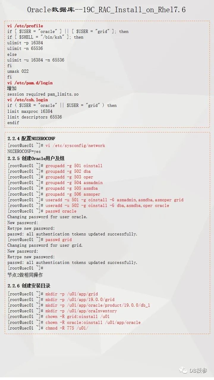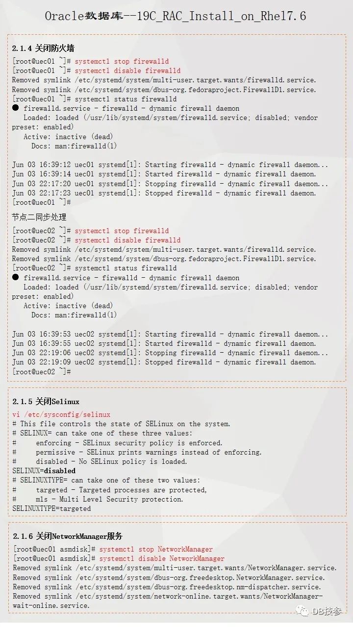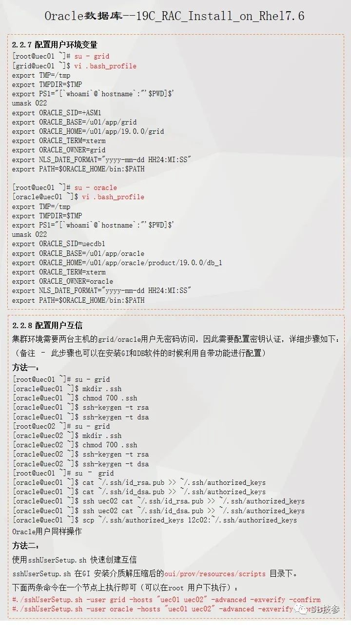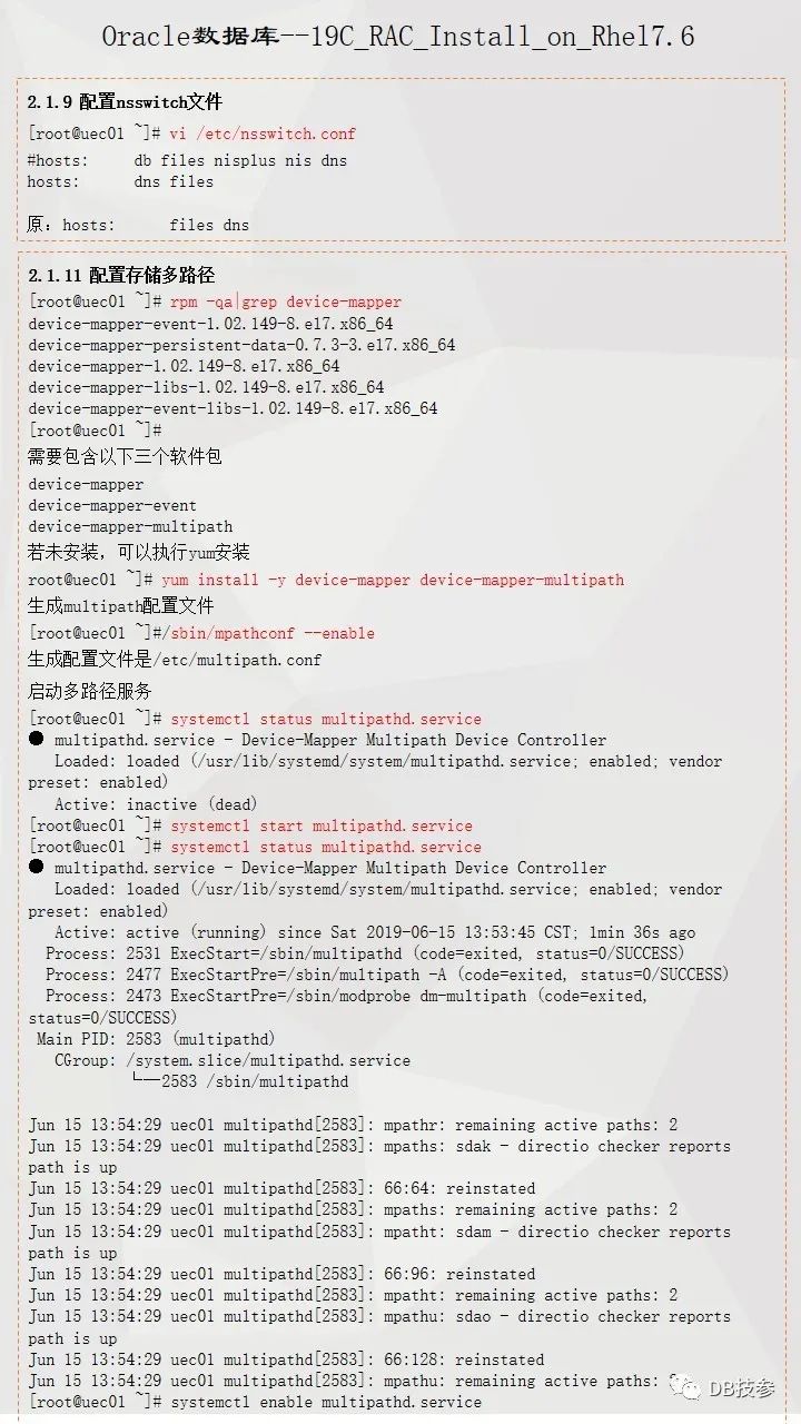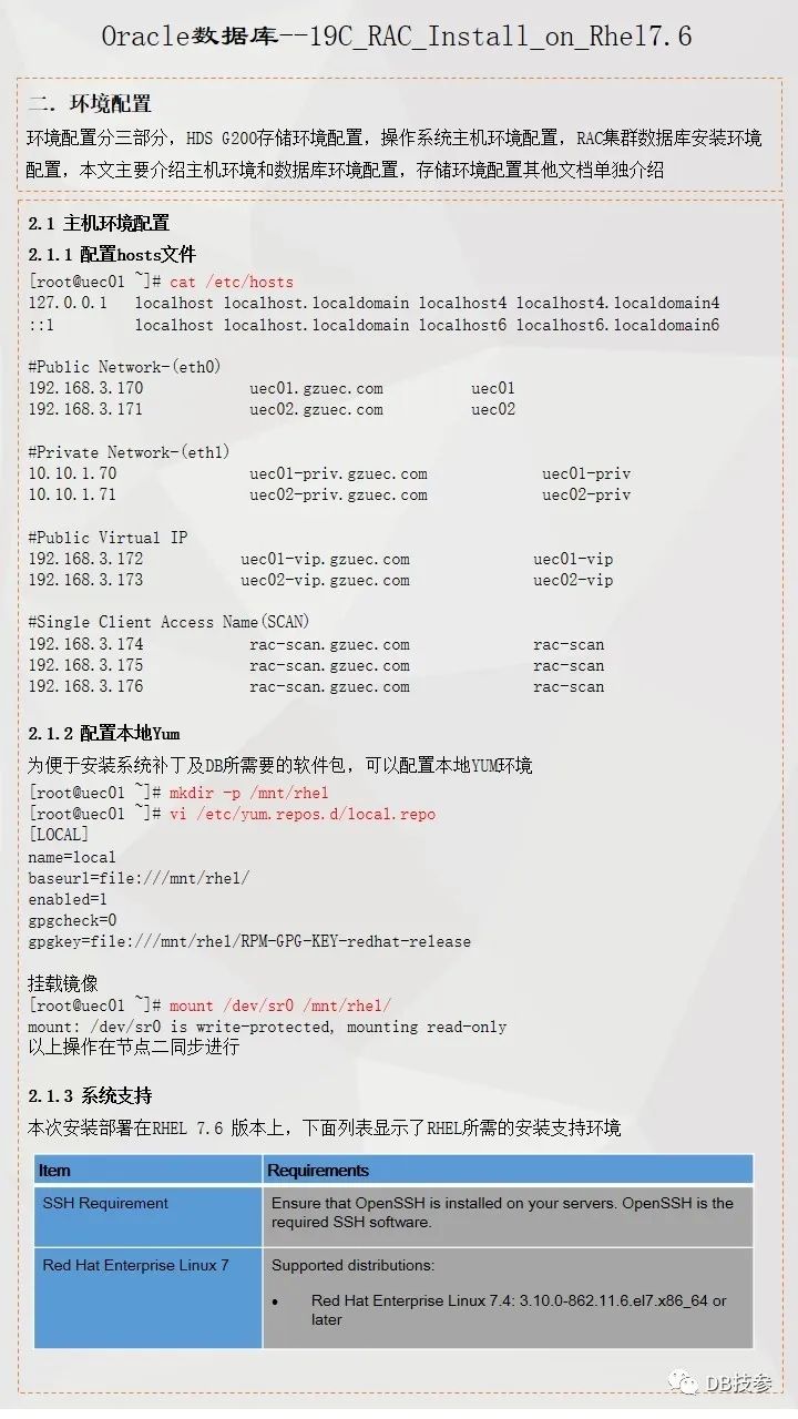 本文档主要介绍Oracle 19C 在Redhat Linux 7.6系统上的一个安装部署过程,给大家一份参考,Oracle RAC 安装部署是比较简单的一个工作,但一些新人在处理的时候总会遇到这样或者那样的问题,其实大部分都是一个原因,即基础环境配置上没有处理好,所以对于这个文档,重点看下前面系统环境配置,后面软件安装部分鼠标点点点的事情了。