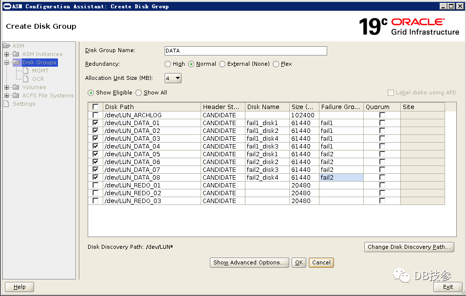 四.创建ASM磁盘组