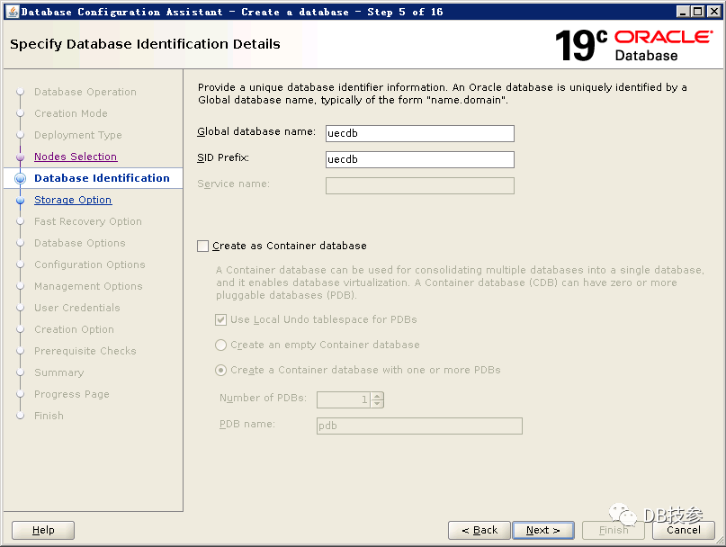 以Oracle用户执行dbca