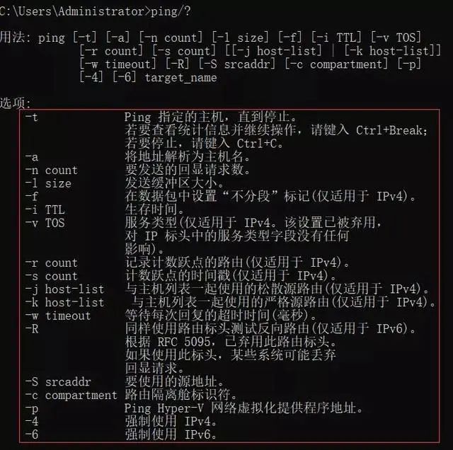 ping 命令用的较多的就这 6 类的,大家有可能在项目中会用到的。
